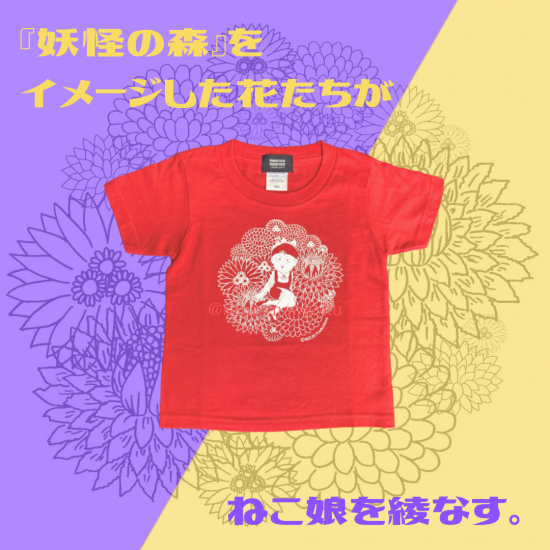 ねこ娘と花 キッズTシャツ